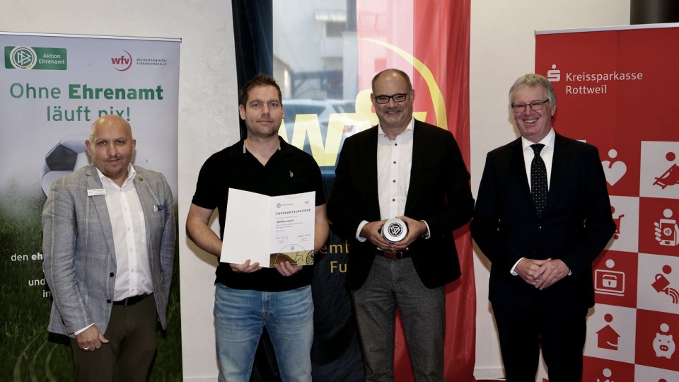Nicht in jedem Verband hat die Auszeichnung der Ehrenamtlichen einen so hohen Stellenwert wie beim Württembergischen Fußballverband (wfv). Nicht etwa beiläufig bei einer Jahresversammlung oder einen vereinsinternen Treffen, sondern in repräsentativen Räumen des Hofer-Saals der Kreissparkasse Rottweil inklusive Ehrengäste aus der Politik.