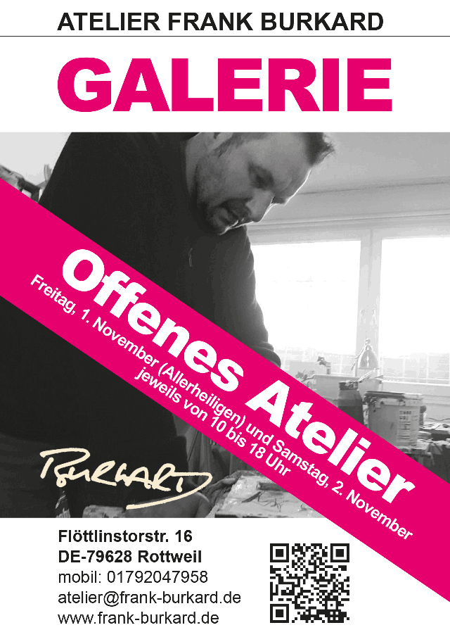 Veranstalter: Atelier Frank Burkard Frank Burkard Telefonnr. : 0741 - 205 335 45 atelier@frank-burkard.de |